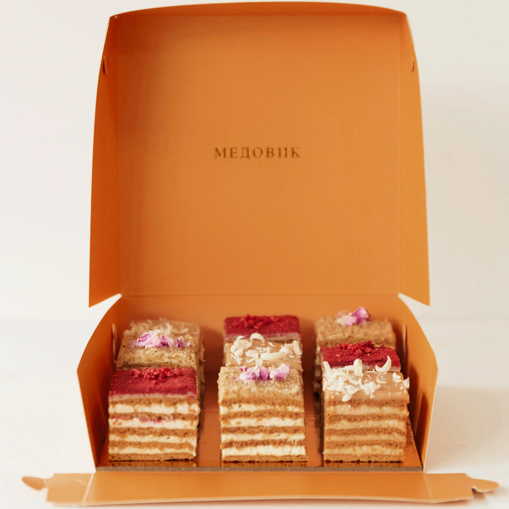 Assorted Honey Cakes in a box of 9 Mini Squares - It is made of many thin caramelised honey layers held together with a cream of sweet and sour ingredients.