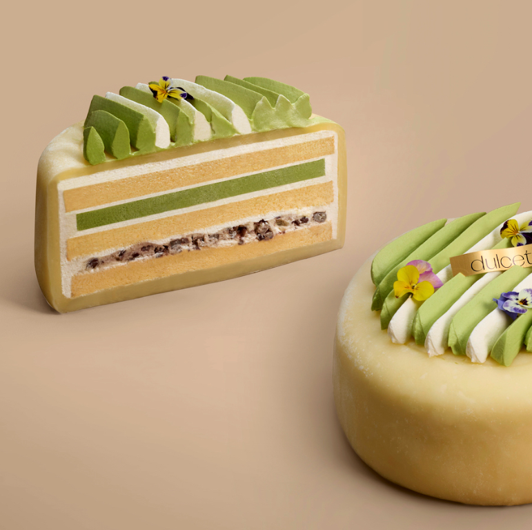 Handmade light Japanese chiffon cake with Soft Mochi, Marukyu Koyamaen matcha cream and velvety azuki bean mousse. Aromatic with a rich and earthy finish.