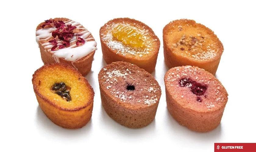 ALMOND FRIAND:ALMOND Meal, EGG Whites, Butter (Milk, Water), Icing Sugar (Dextrose, Corn Starch, Palm Oil), Gluten Free Flour (Maize Starch, Modified Starch (1422), Rice Flour, Raising Agents (450, 500), SOY Flour) Dried Fruits (Natural), Fruit Flavour (Flavour, Colours (E122, E123, E129, E133)).