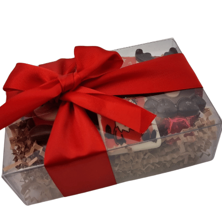 Beautifully presented cello gift box with 11 delicious Belgian Christmas chocolates (100G), perfect for gifting and for sharing. Say it with chocolate this year and send a box full of fun xmas treats.