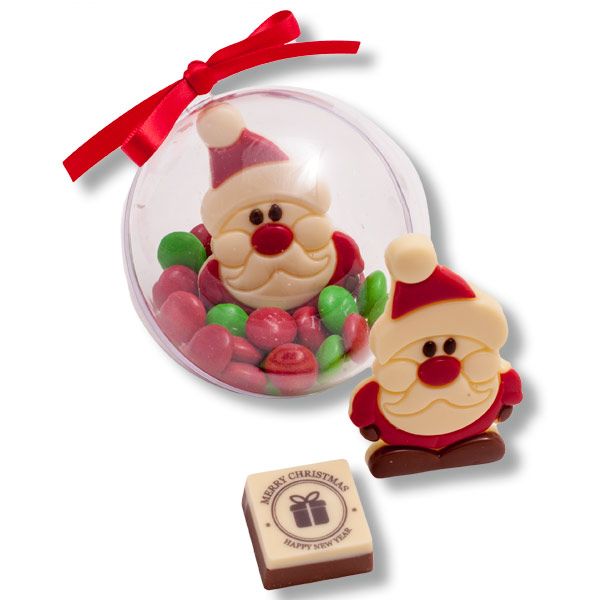 Each christmas bauble consists of one red nose chocolate, printed merry christmas tile and twenty mini m&m chocolates in festive colours.