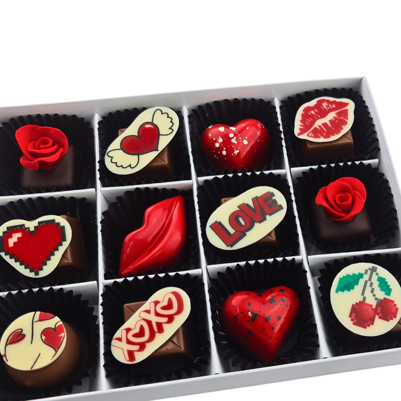Show your love in the most decadent way with our 12-piece Handmade Belgian Chocolate Bonbons. Crafted with the finest Belgian chocolate, this luxurious collection is the perfect romantic gesture for Valentine's Day, anniversaries, or any special occasion.