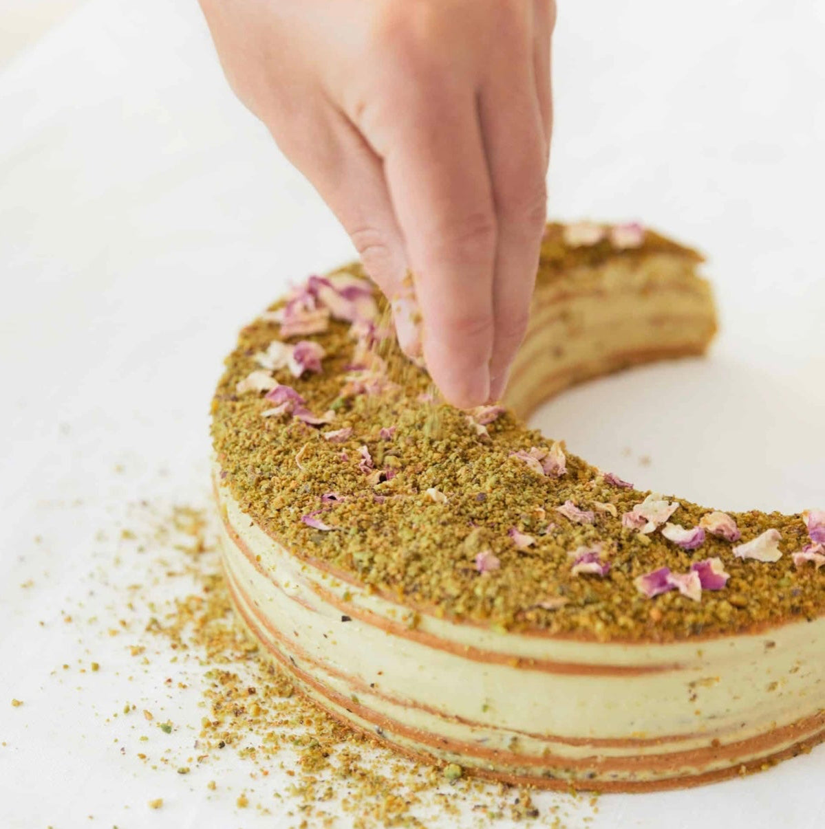 Ingredients: pistachio, honey, sugar, milk, butter, wheat flour, cream, eggs.