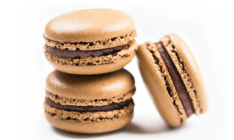 Macaron Shell - (Sugar (53%), Egg White, Egg White Powder), Flavour - Chocolate (Cream, Dark Chocolate (39%), Butter, Colours (E133, 155))